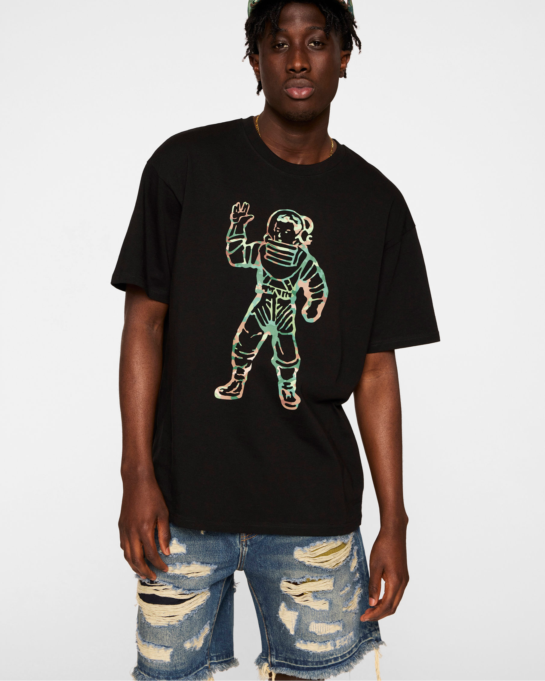 The Astro Camo Tee showcases a front print of the Astronaut logo.
