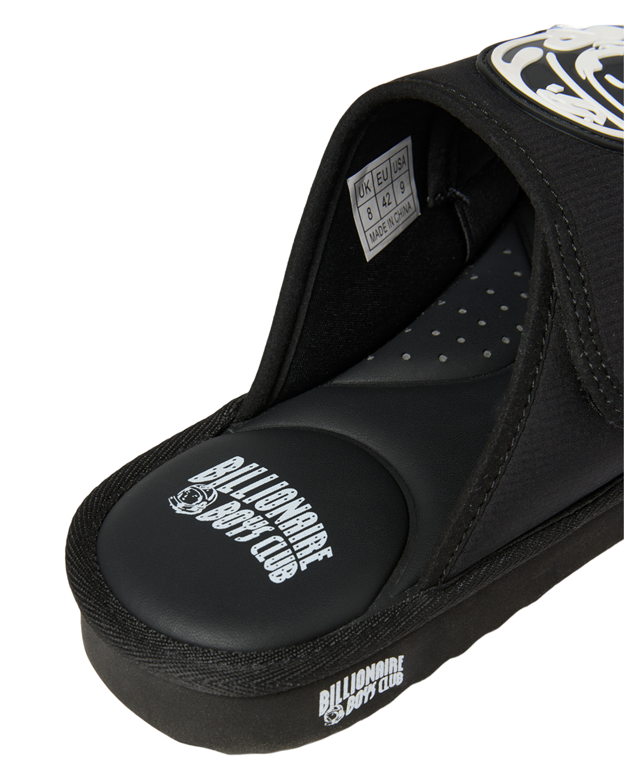 Slides featuring a velcro strap. along with the Helmet Head on top and the Classic Curve logo at the heel.