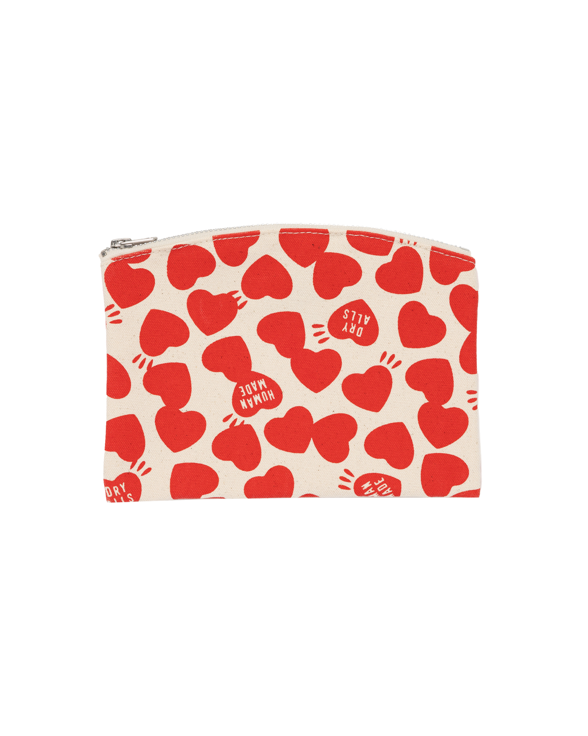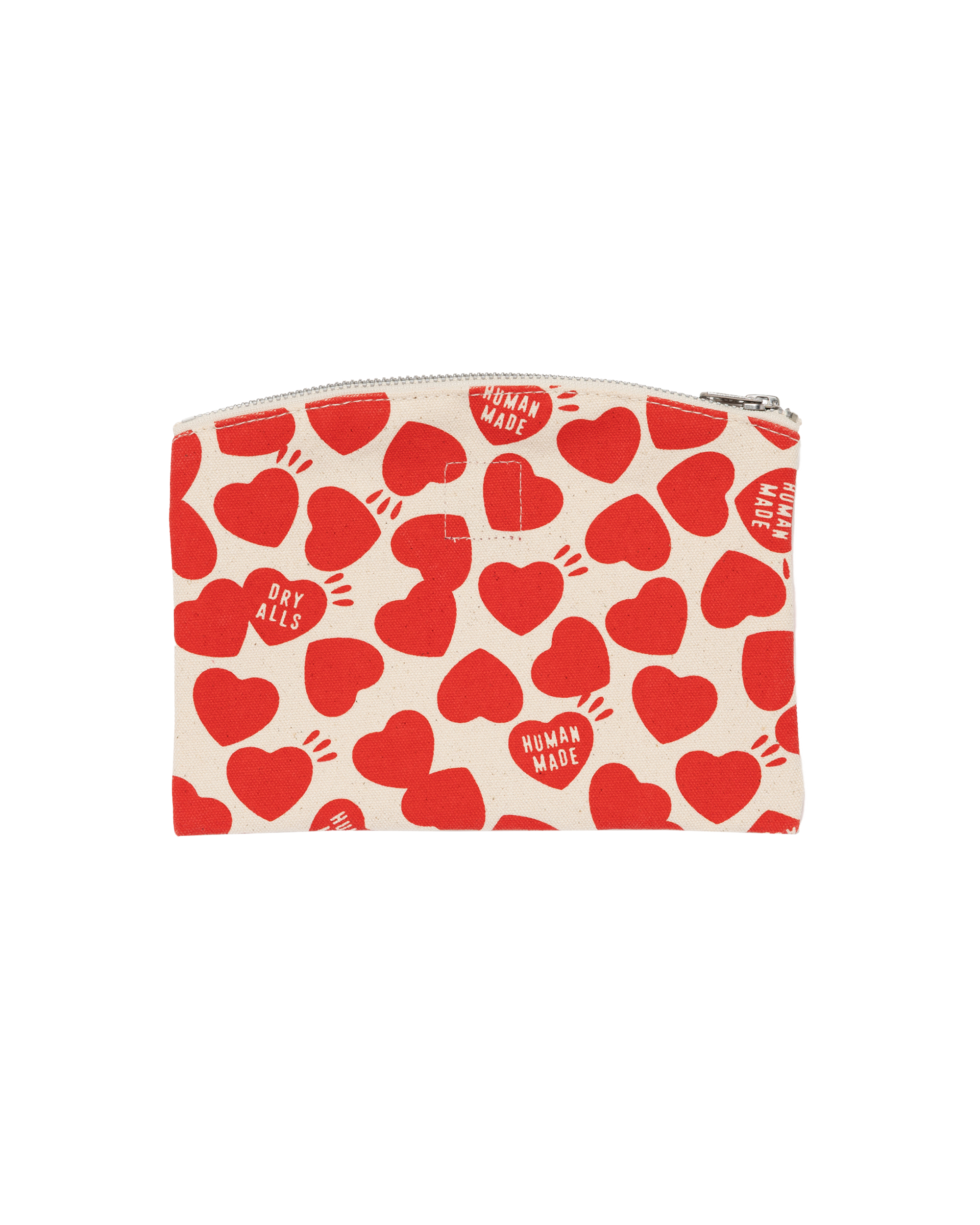 This bank pouch is made from durable cotton canvas and features a charming all-over heart print. Its rounded upper edges and flat design make it easy to slip into your pocket or bag for convenient carrying.