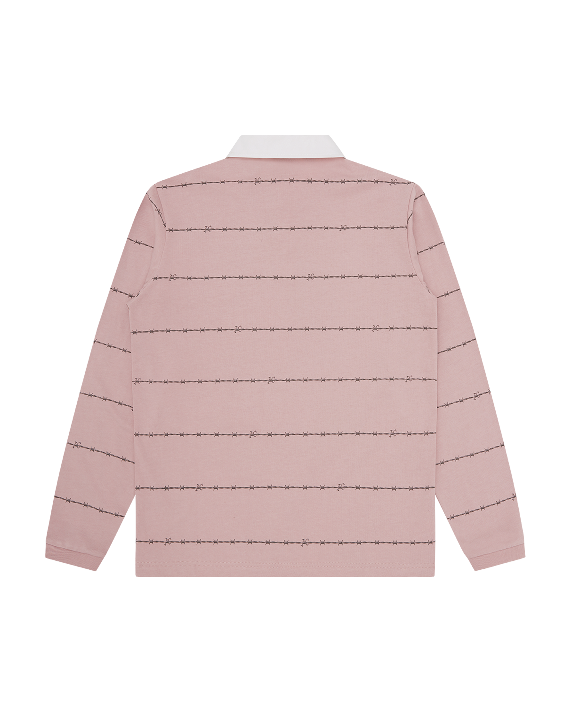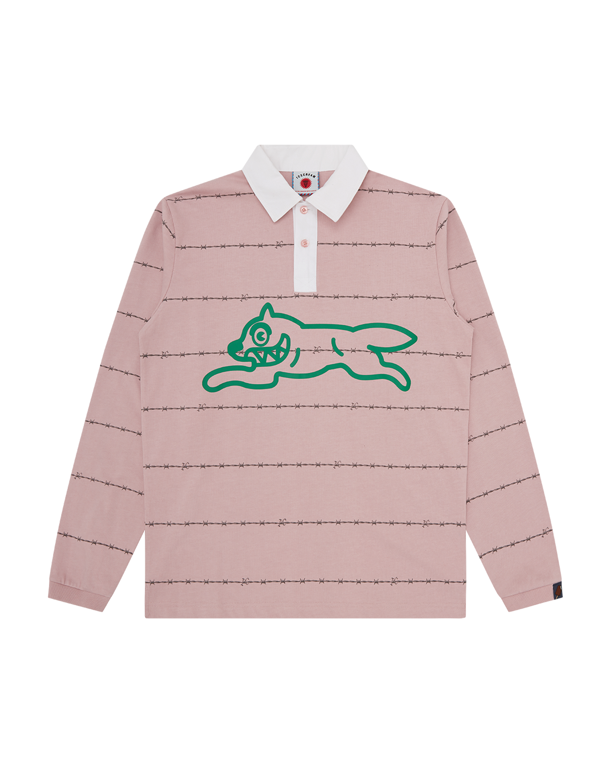 Produced using 100% cotton. the Barbed Wire Rugby Shirt features the Running Dog printed at front.