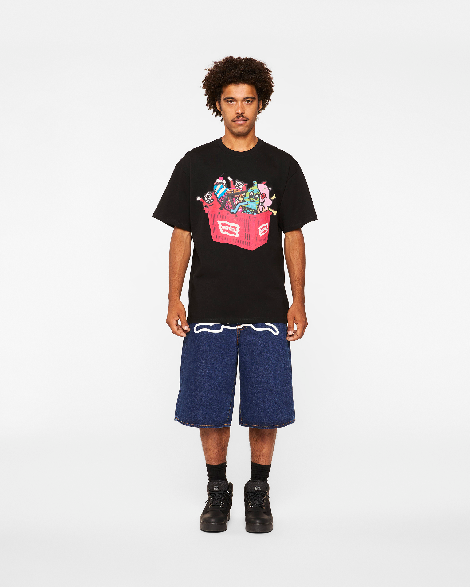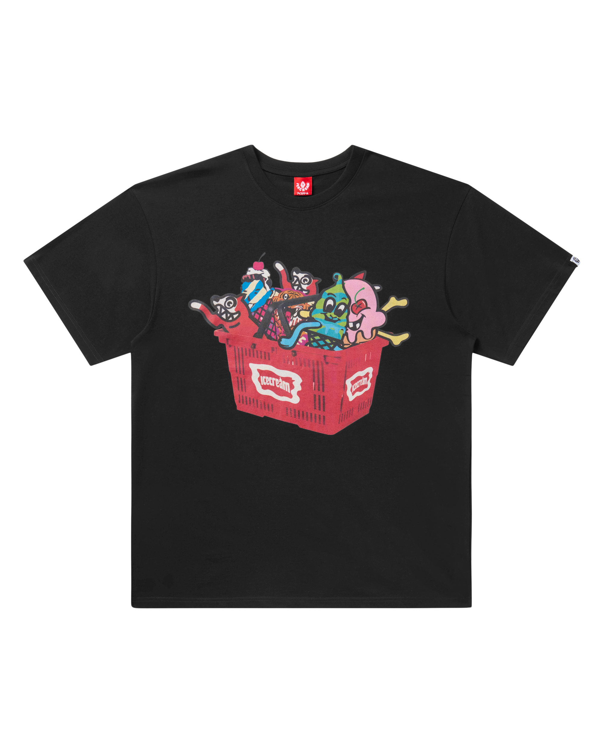 The Basketcase Tee has a front graphic showing a basket filled with all the ICECREAM logos and the IC signet printed on the back.