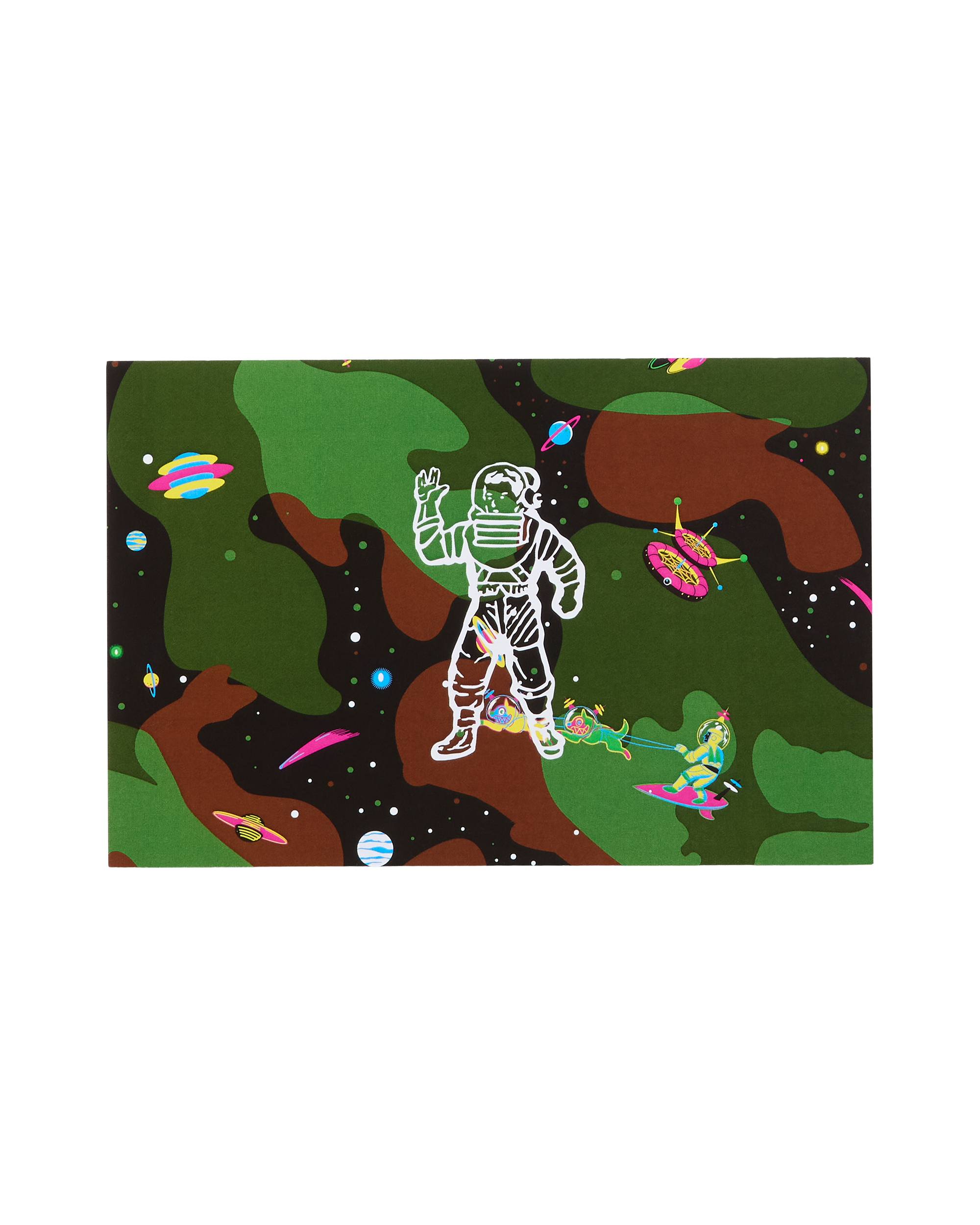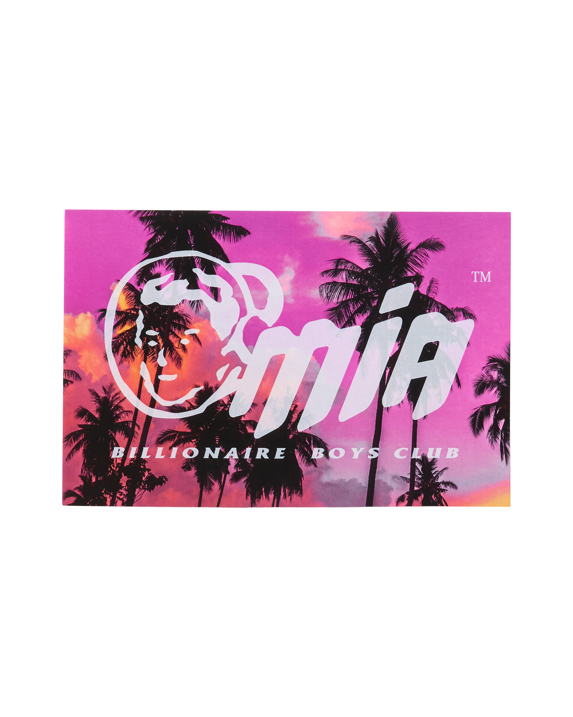 The BBC Postcard Set includes 4 unique postcards. each with a different design. The set features a Miami skyline with the MIA logo. a Space Camo pattern with a Standing Astronaut. a Diamonds & Dollars pattern with the Curve logo. and a New York skyline with the Helmet Head logo.