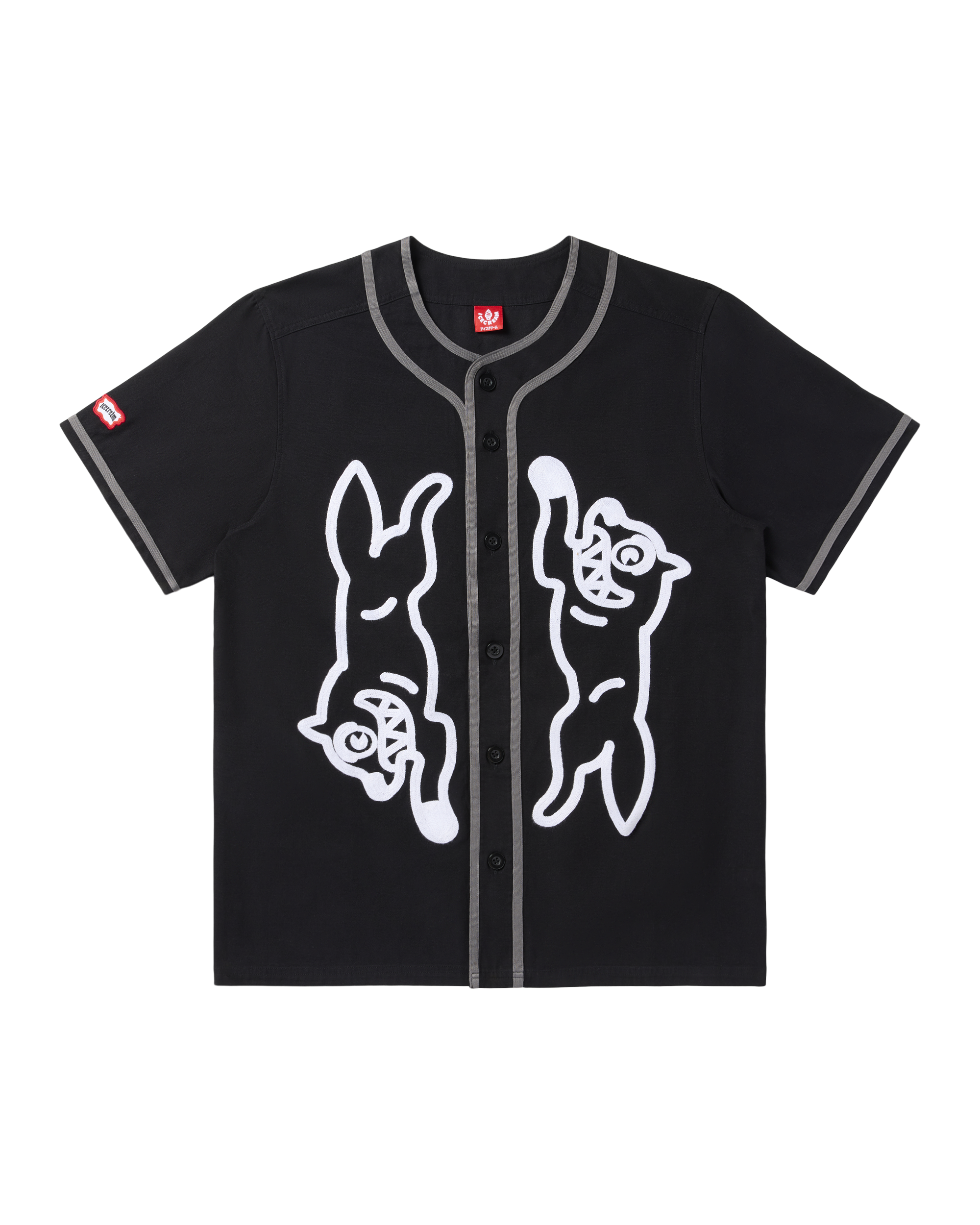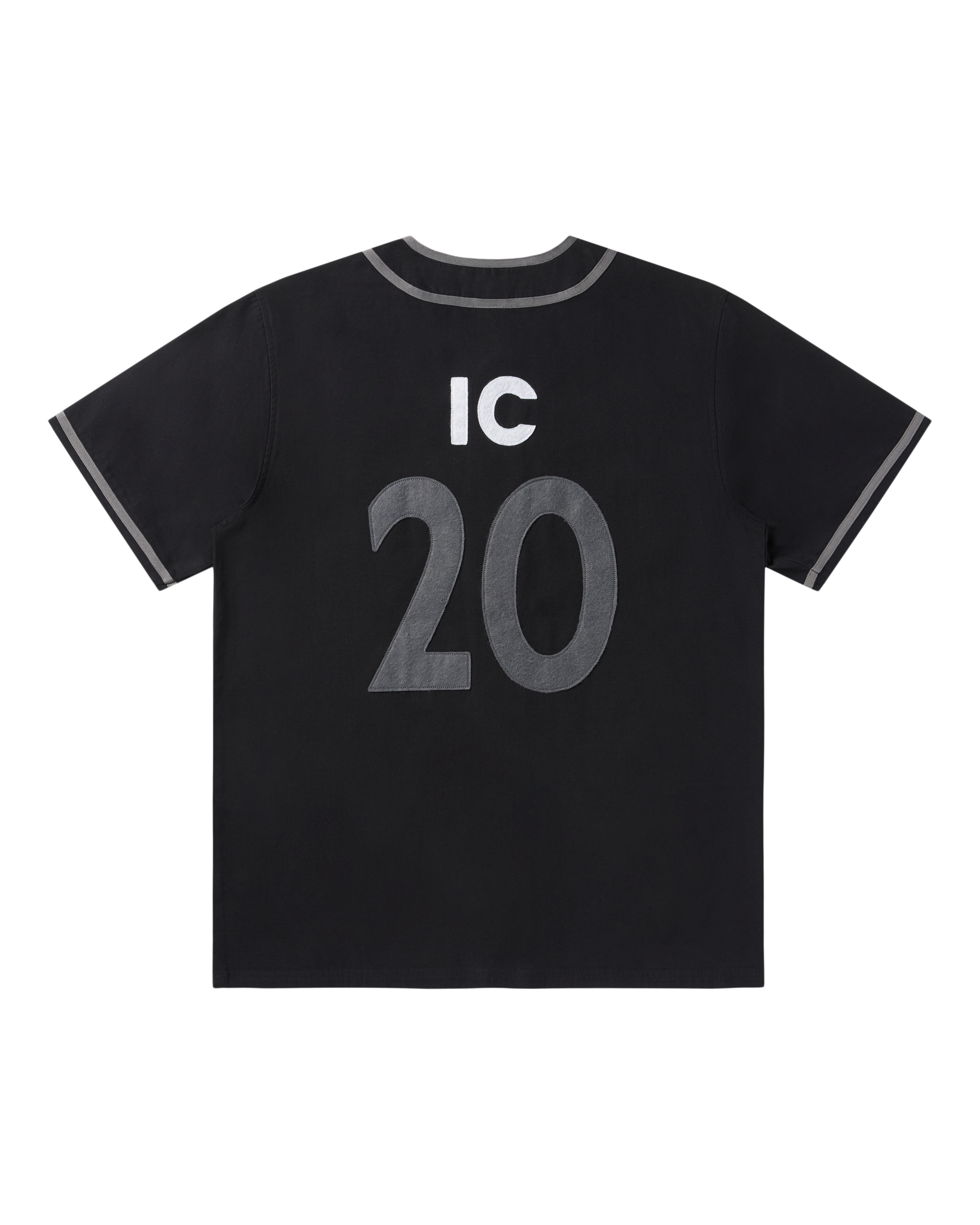 Jersey tee featuring Running Dog chainstitch embroidery on the front and an IC 20 felt appliqué on the back.