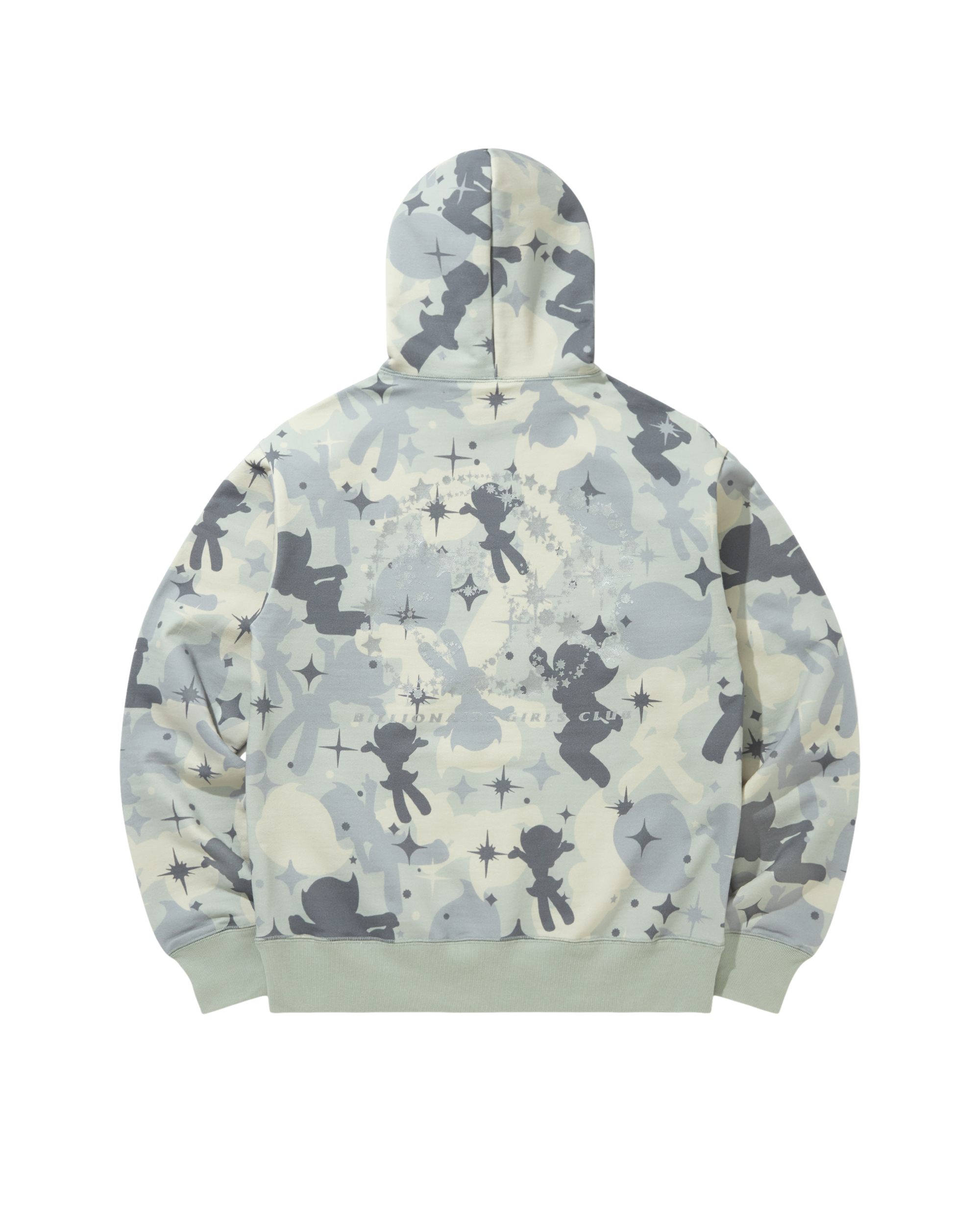 The Billionaire Girls Club x Astro Girl Hoodie features a grayscale camouflage print with Uran and Astro Boy designs.