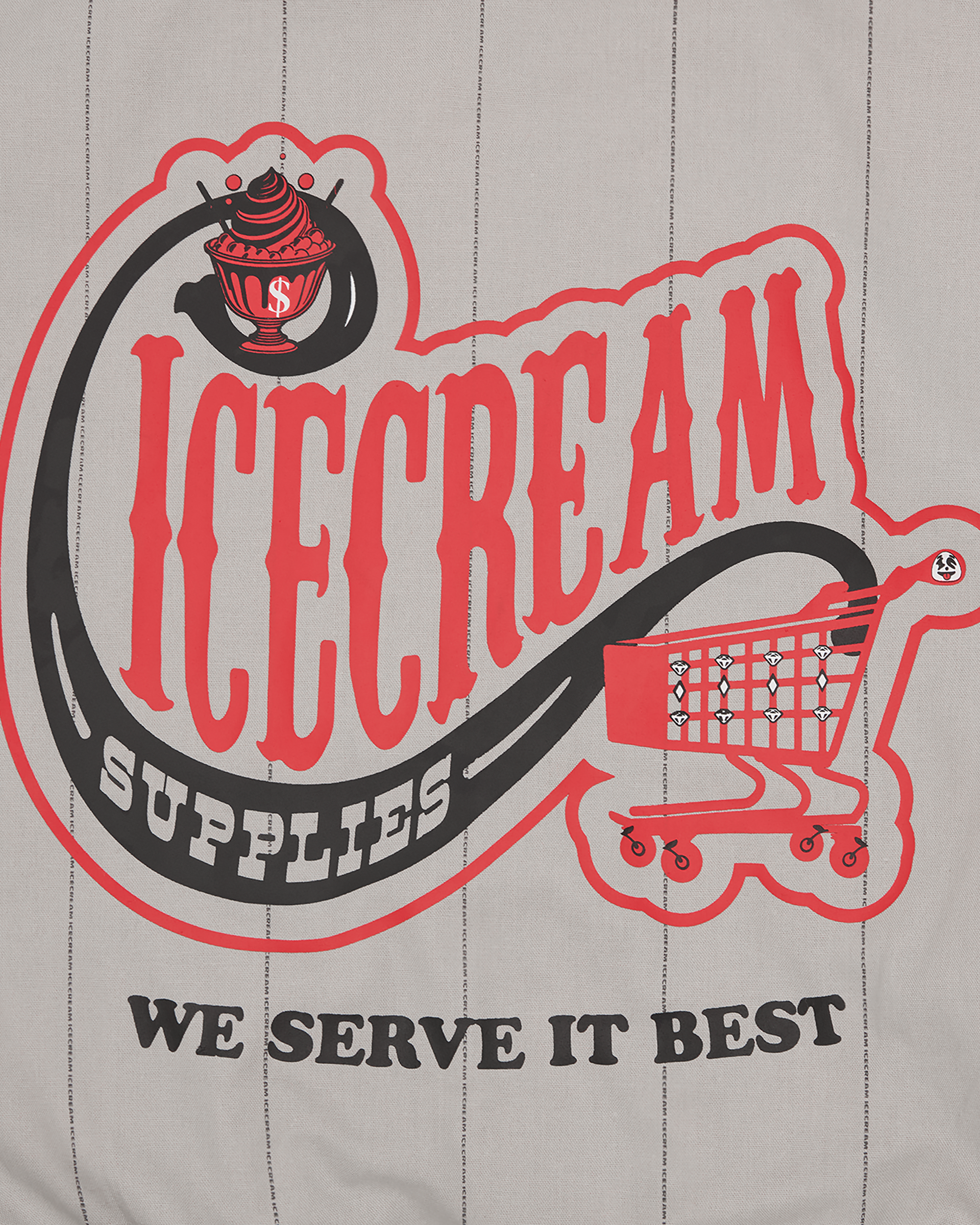 - All-over ICECREAM stripes