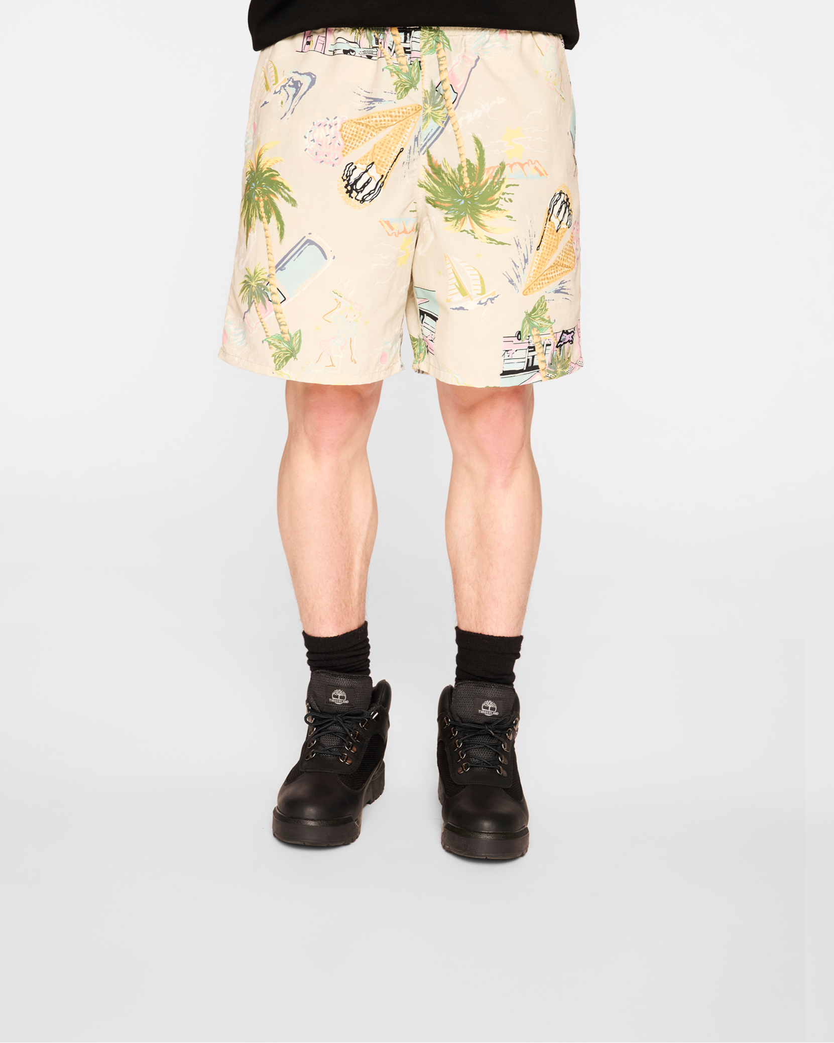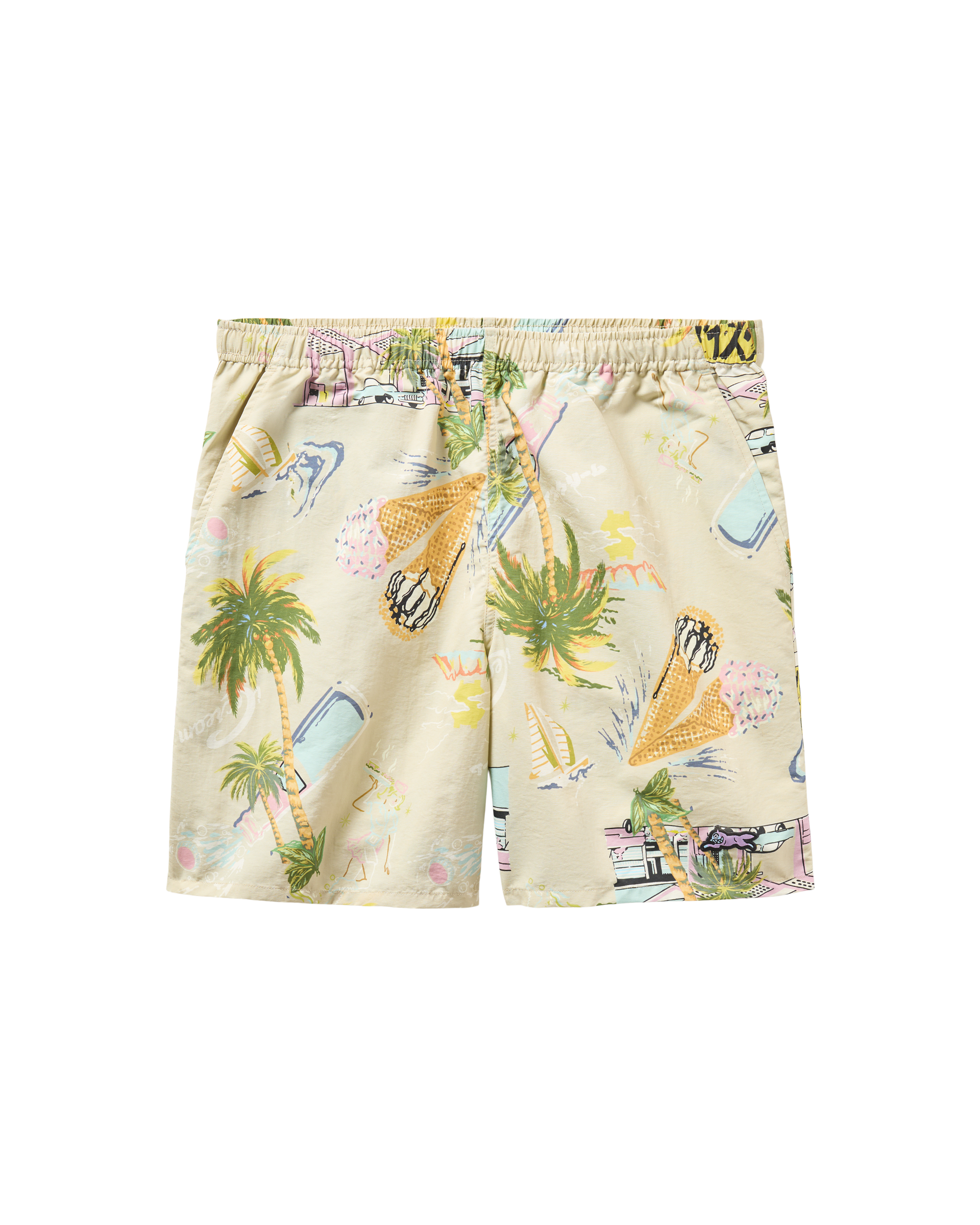 The Diner Shorts features an adjustable waistband. a vintage-inspired all over print. and a Running Dog woven label.