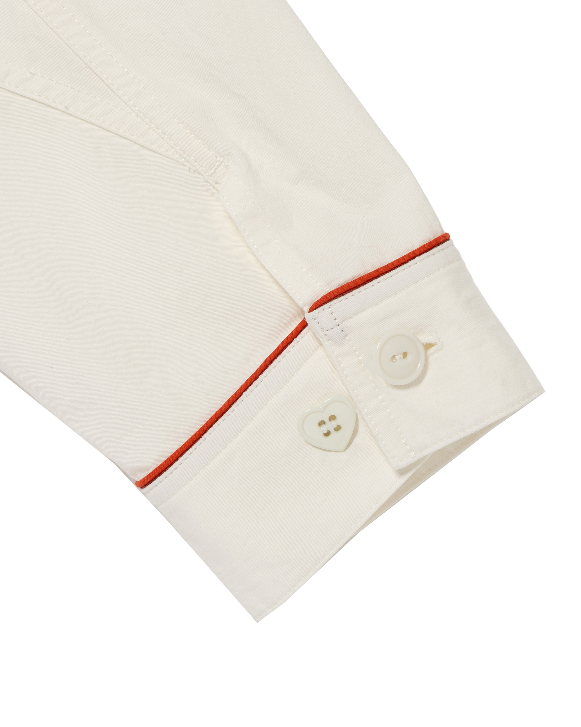 A twill drizzler jacket that can be worn in three seasons. It features a cropped silhouette and graphics on the front and back.