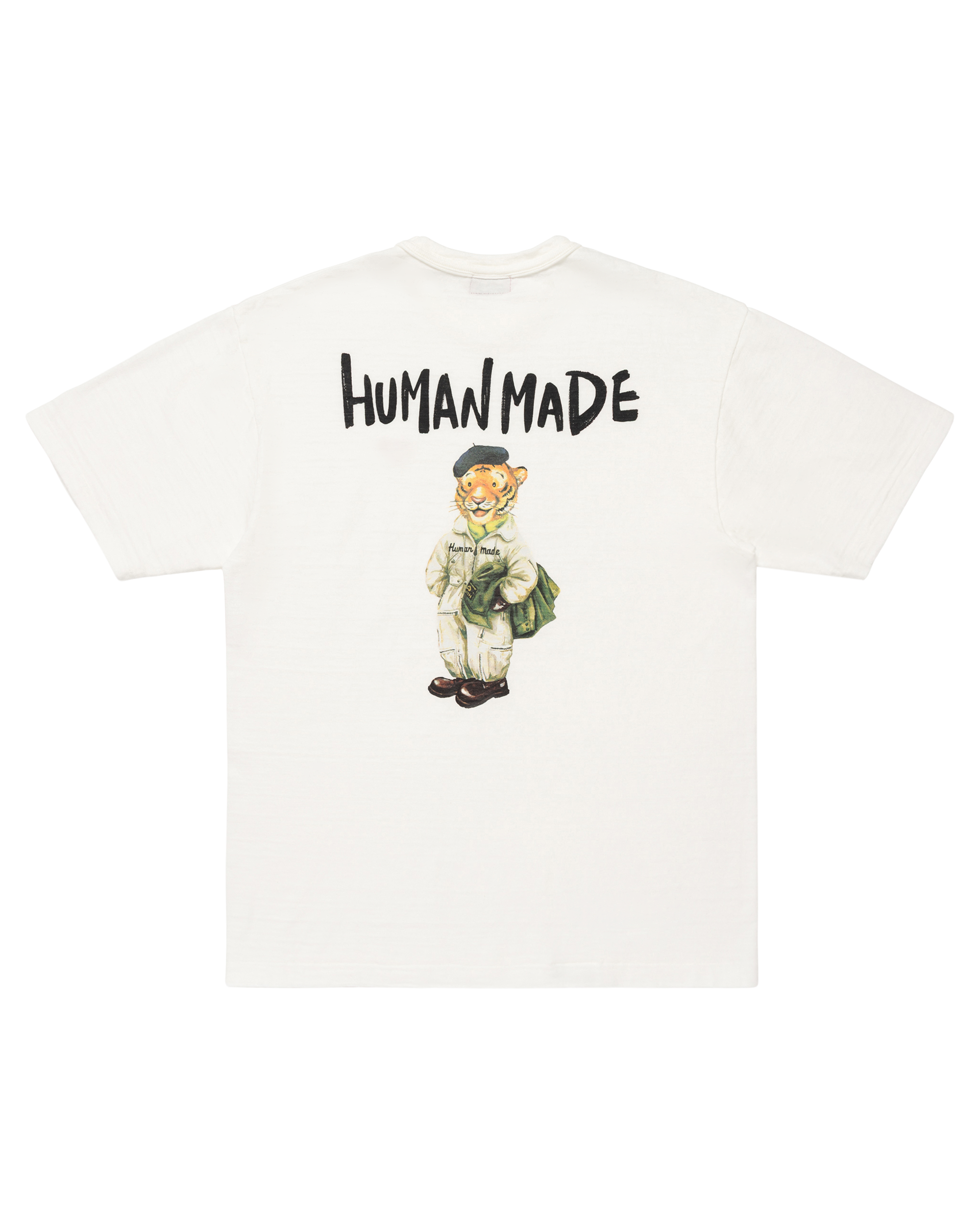 The Graphic T-shirt is crafted from soft slub fabric. It showcases the Heart embroidered on the front and the Human Made logo with a bear on the back.