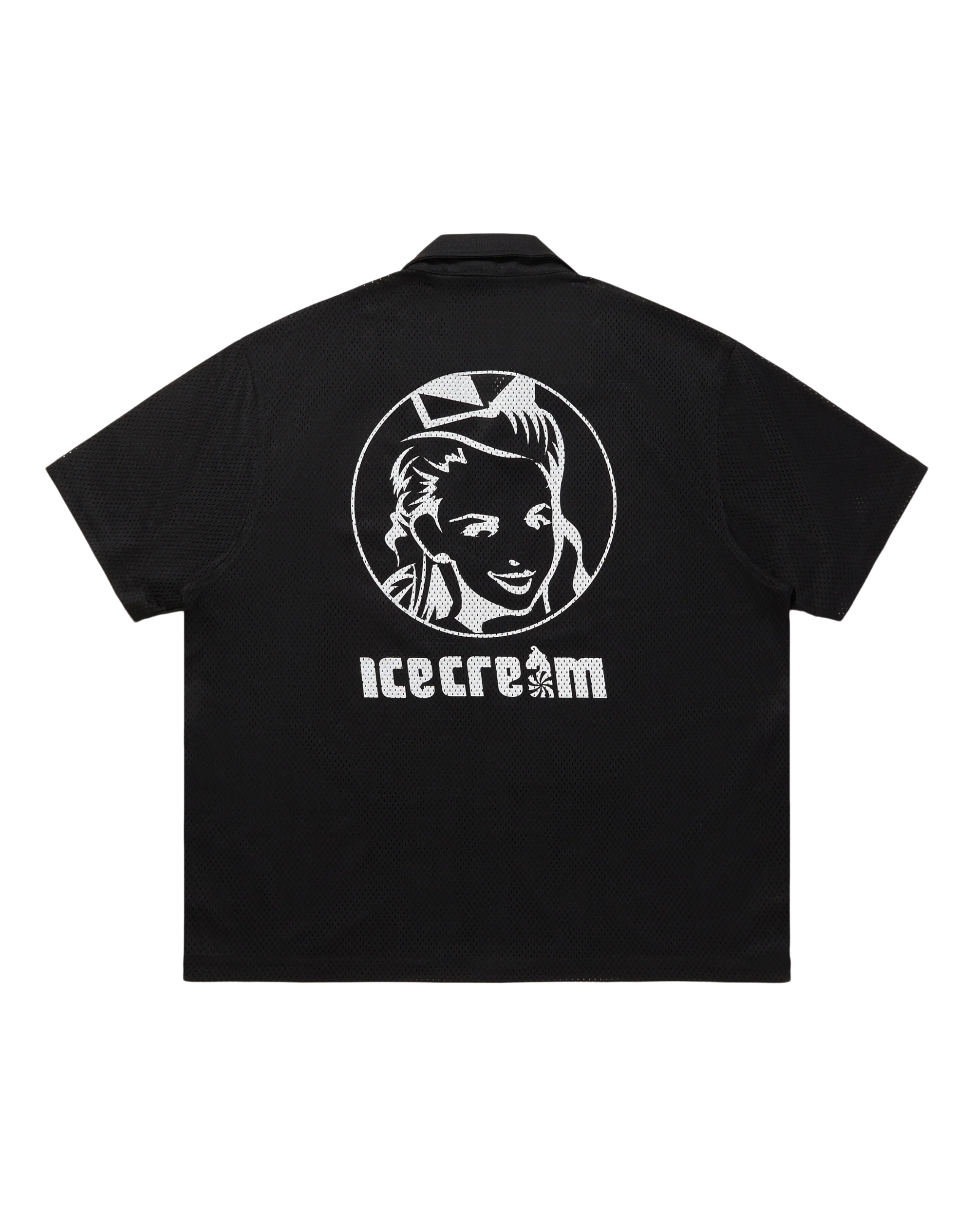 This Open Collar Mesh Shirt displays the Icecream logo on both the front left chest and the back.