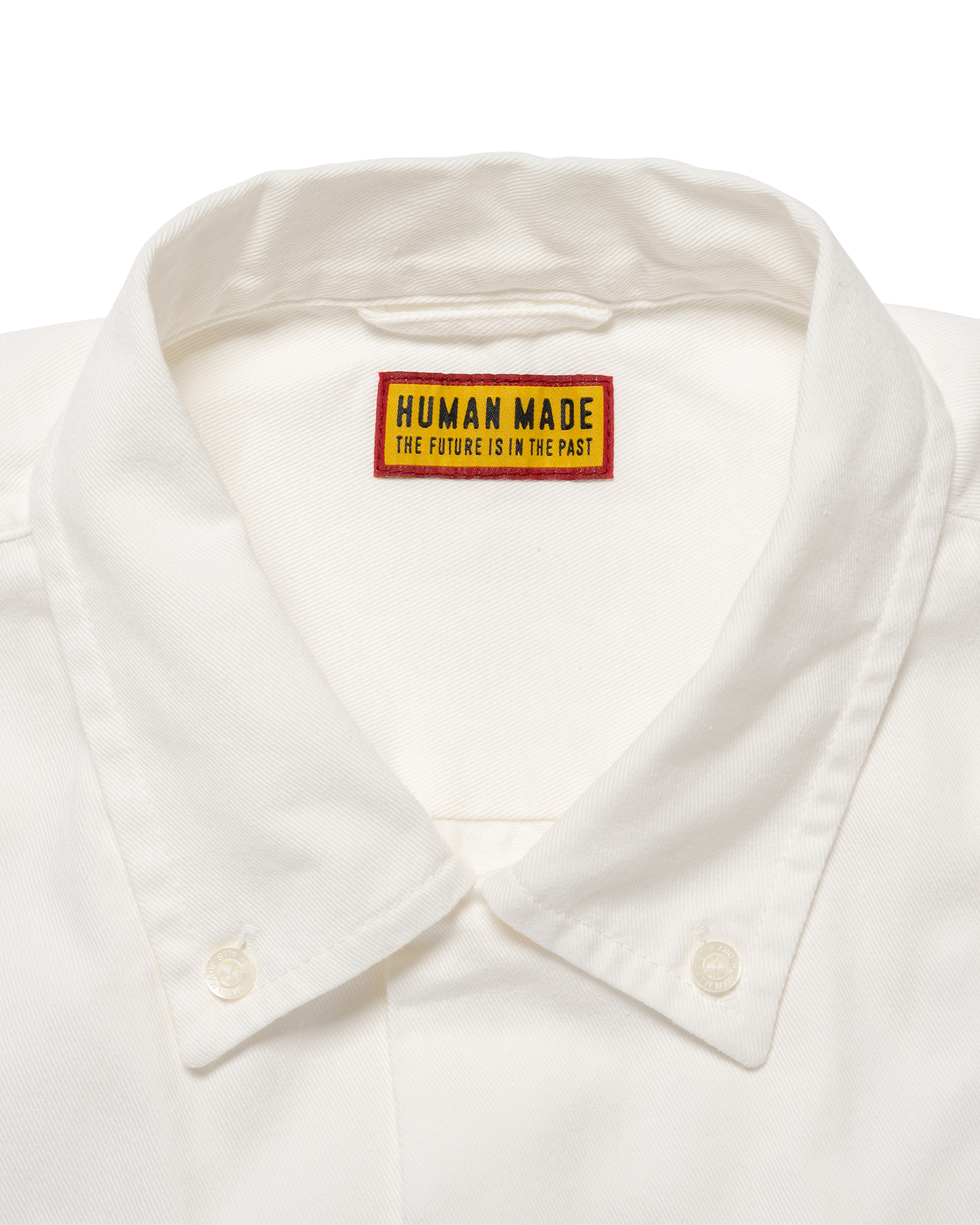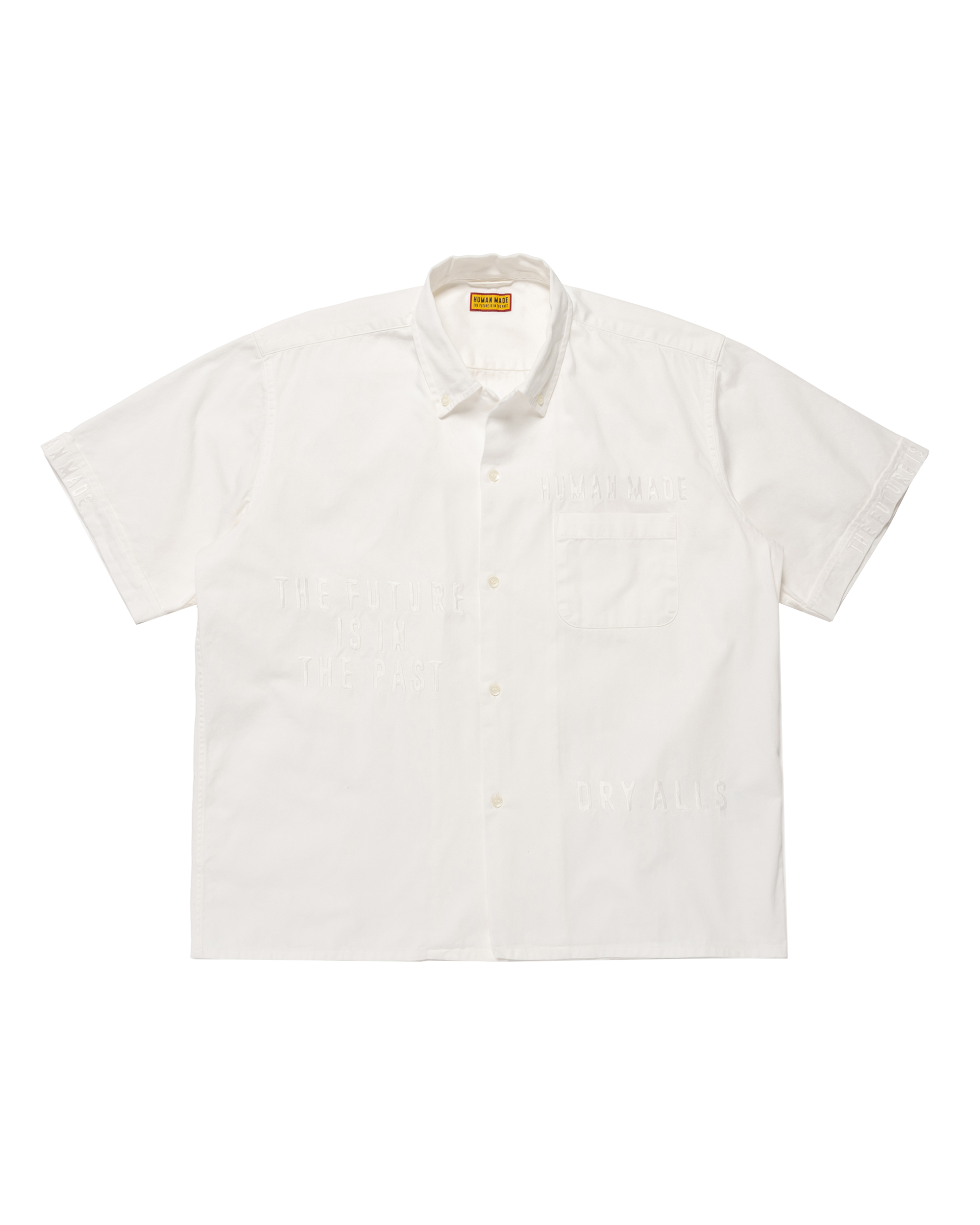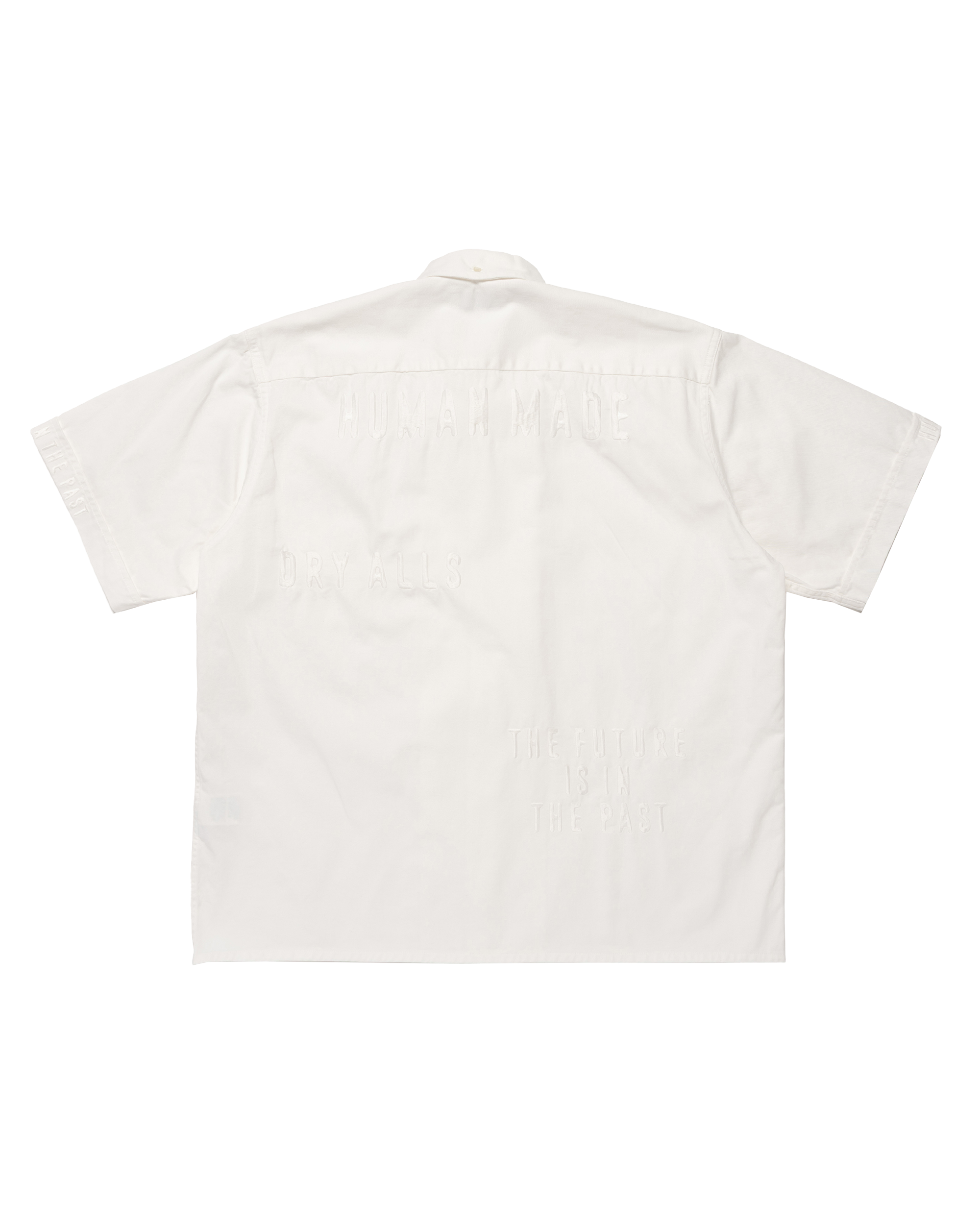 This open collar button-down shirt features subtle embroidered graphic details.