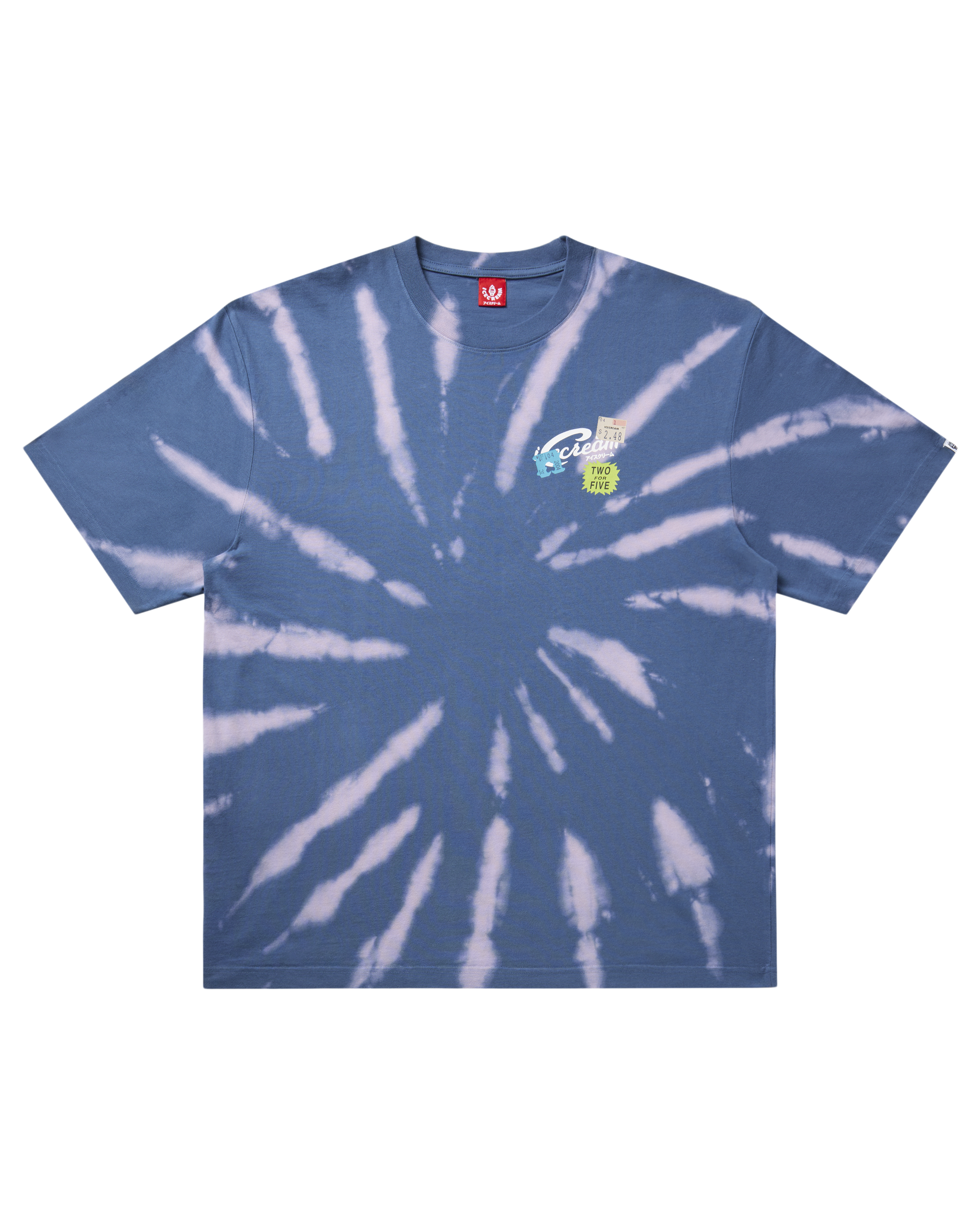 The Price Check Tee features a tie-dye pattern. the ICECREAM Logo on the front left chest. and a back design with the saying Good health. good for wealth.