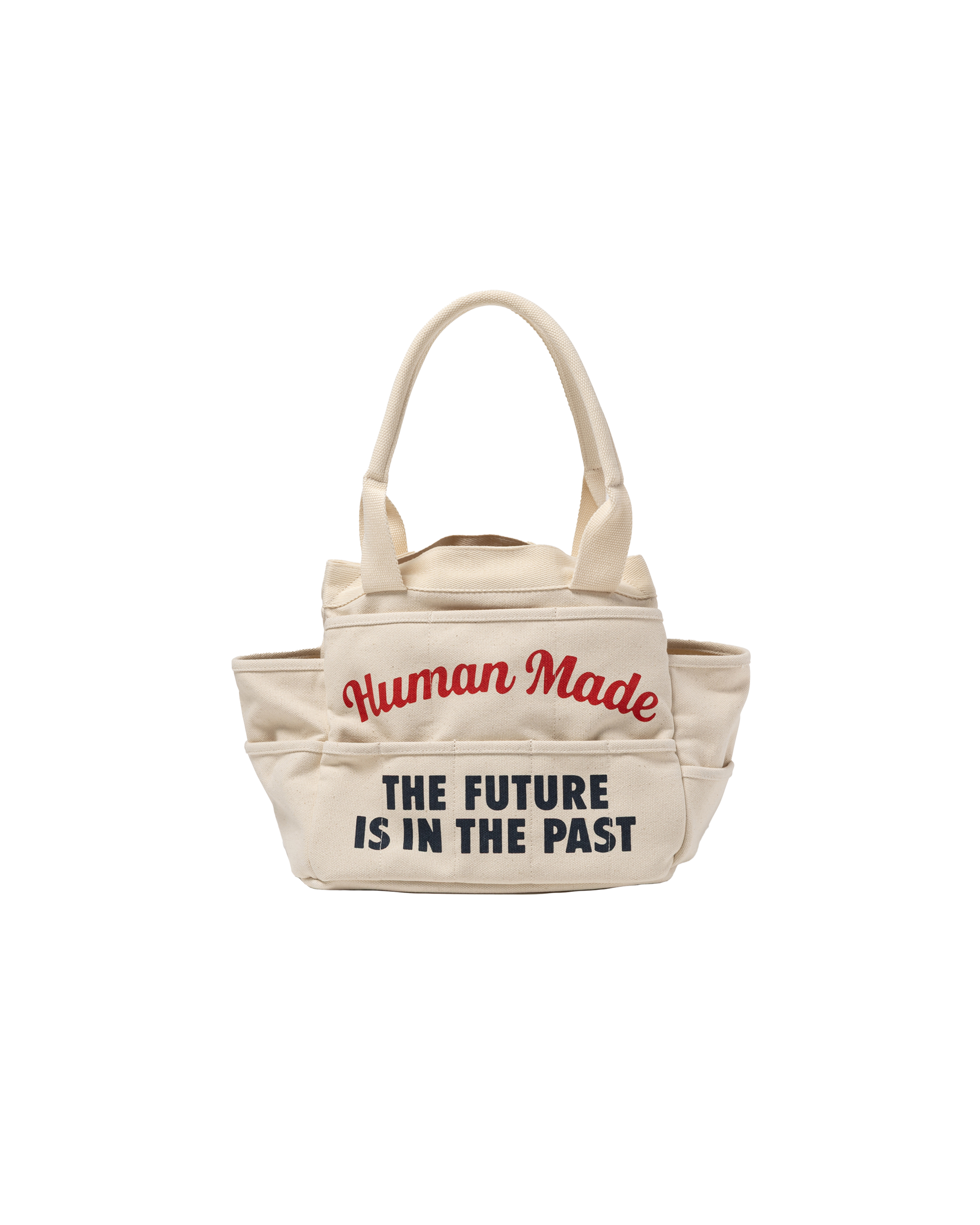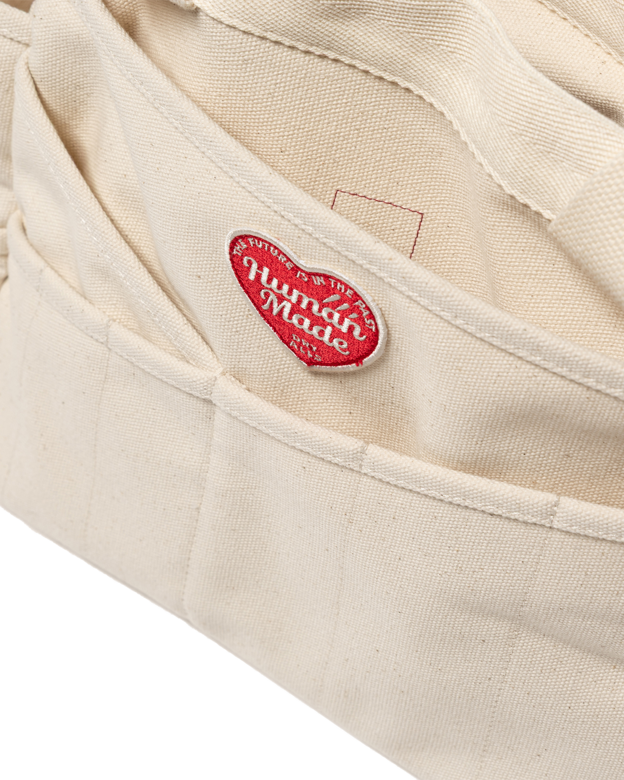 The Multi-Pocket Tool Bag is crafted from durable 18oz cotton canvas with functional design details and signature HUMAN MADE graphics.
