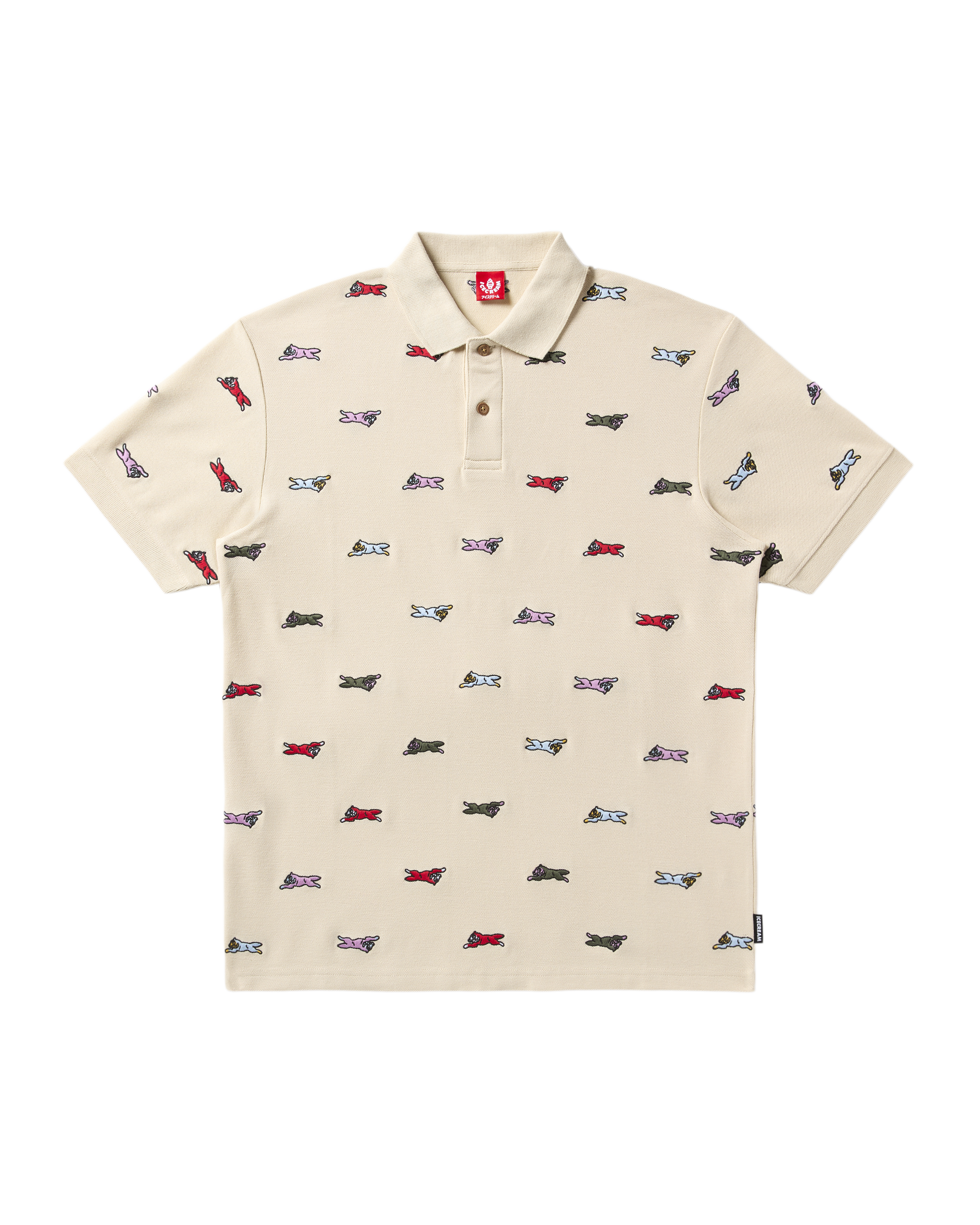 This polo shirt showcases the signature Running Dog logo through intricately embroidered details.