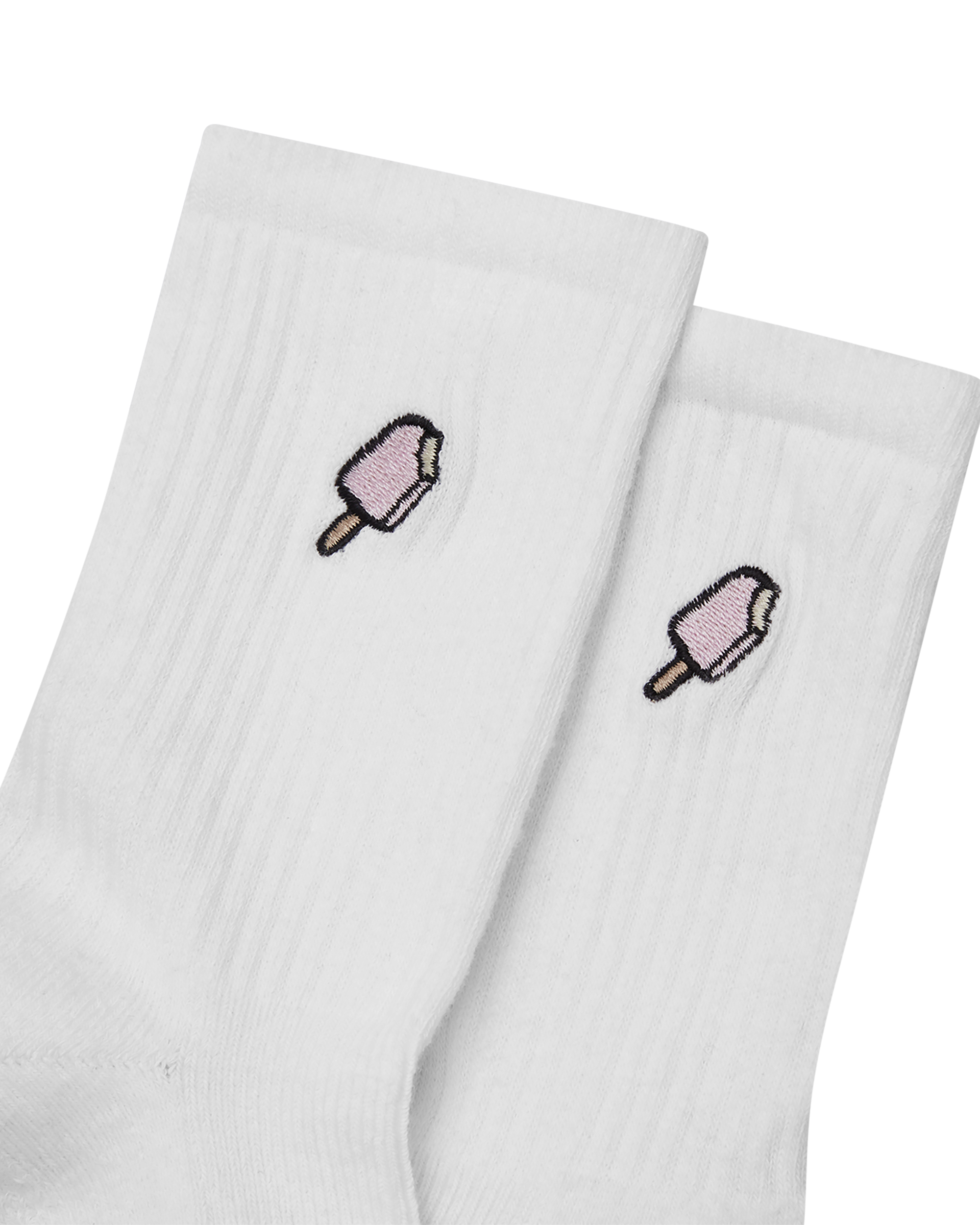 The Popsicle Ankle Socks present the popsicle embroidery at ankles and the ICECREAM logo on the sole.