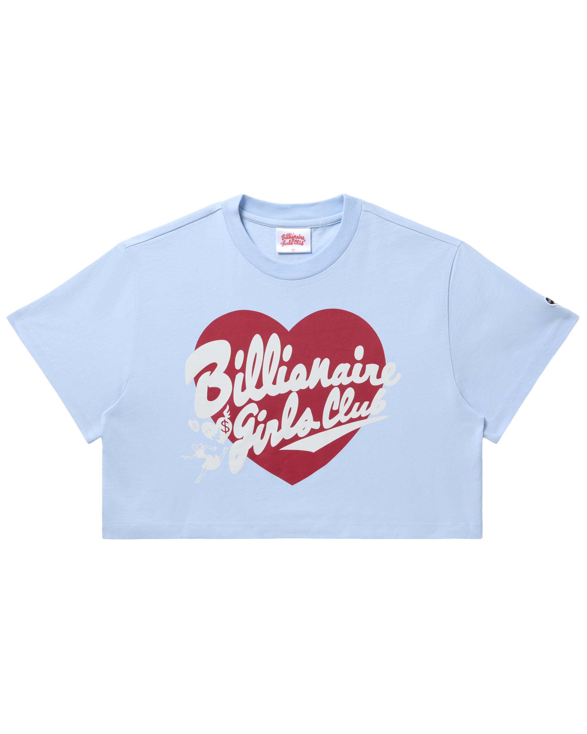The Womens Script Heart Cropped Tee shows the Script logo with a heart on the front and the BGC logo at the back of the neck.