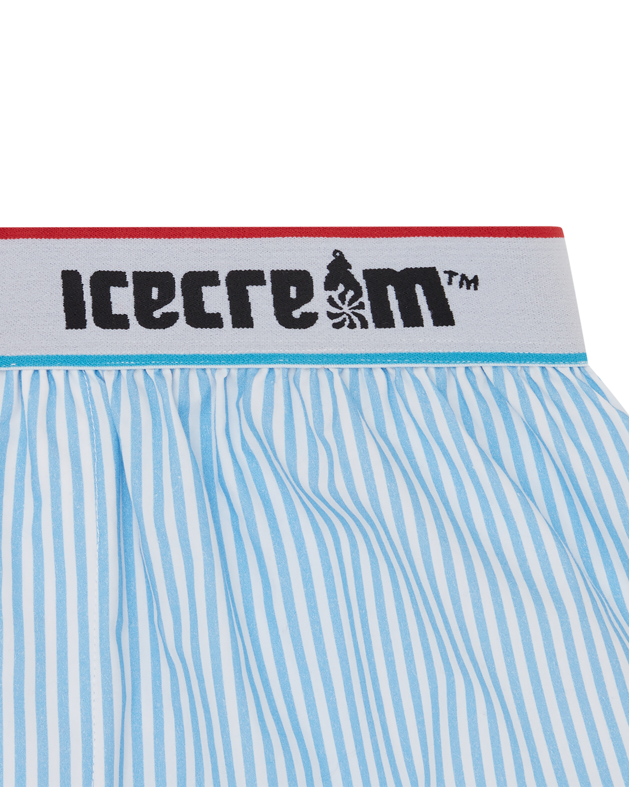 100% Cotton Soft Serve Boxer Short with an all-over pink stripe pattern and presenting the ICECREAM branded waistband.